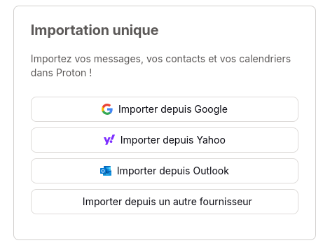 Notamment, si vous choisissez Proton Mail, vous pouvez utiliser l’utilitaire Easy Switch pour migrer vos mails existants vers Proton. Dans les instructions données dans l’article, choisissez Outlook au lieu de Google :