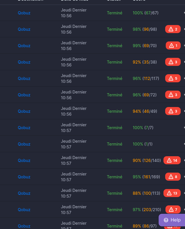 L’abonnement à Qobuz propose un accès gratuit au site Soundiiz qui permet de transférer les playlists que l’on a sur Spotify vers Qobuz. Une fois le transfert terminé, Soundiiz affiche le nombre de titres qui n’ont pas pu être correctement traités. Comme on peut le voir sur la copie d’écran ci-dessous, le taux d’échec est relativement faible, entre 1% et 10%, sur des playlist récentes comportant principalement des morceaux relativement peu connus (quelques milliers ou dizaines de milliers d’écoutes totalisées sur Spotifiy) :